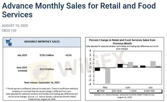Doanh số bán lẻ tháng 7 của Mỹ tăng 0,5% so với tháng trước, dữ liệu tháng 6 cũng được điều chỉnh tăng từ 0,6% lên 0,9%. So với cùng kỳ, tăng trưởng đạt 3,9%. Tuy nhiên, sau khi loại bỏ yếu tố lạm phát, doanh số bán lẻ thực tế giảm từ 1,63% xuống 1,15%, cho thấy sự suy yếu trong tiêu dùng cuối cùng đã dần trở thành thực tế thay vì chỉ là dự báo về chi tiêu vượt mức.