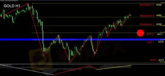 Duy trì quan điểm kỹ thuật từ phiên trước, quan sát trên khung thời gian H1, vùng 4.379–4.411 hiện được xem là khu vực đáy tạm thời. Nếu xu hướng tăng tiếp diễn, nhà đầu tư cần theo dõi lực hỗ trợ tại vùng 4.411 (SUP2). Việc phá vỡ vùng kháng cự của mô hình cho thấy xu hướng đi ngang đang chuyển sang xu hướng tăng.