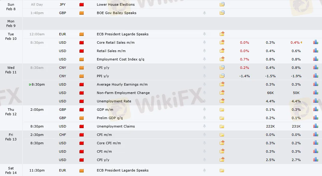 Sáng ngày 12/02, Vương quốc Anh công bố GDP tháng trên tháng và GDP sơ bộ quý IV/2025, với dự báo tăng trưởng khiêm tốn nhờ tác động tích cực từ các biện pháp ngân sách. Chiều ngày 13/02, Thụy Sĩ công bố CPI tháng trên tháng, dự kiến vẫn ở mức thấp ổn định, phản ánh môi trường giá cả toàn cầu. Và vào tối ngày 14/02, bài phát biểu của Chủ tịch Ngân hàng Trung ương Châu Âu (ECB) Christine Lagarde sẽ được theo dõi sát sao.