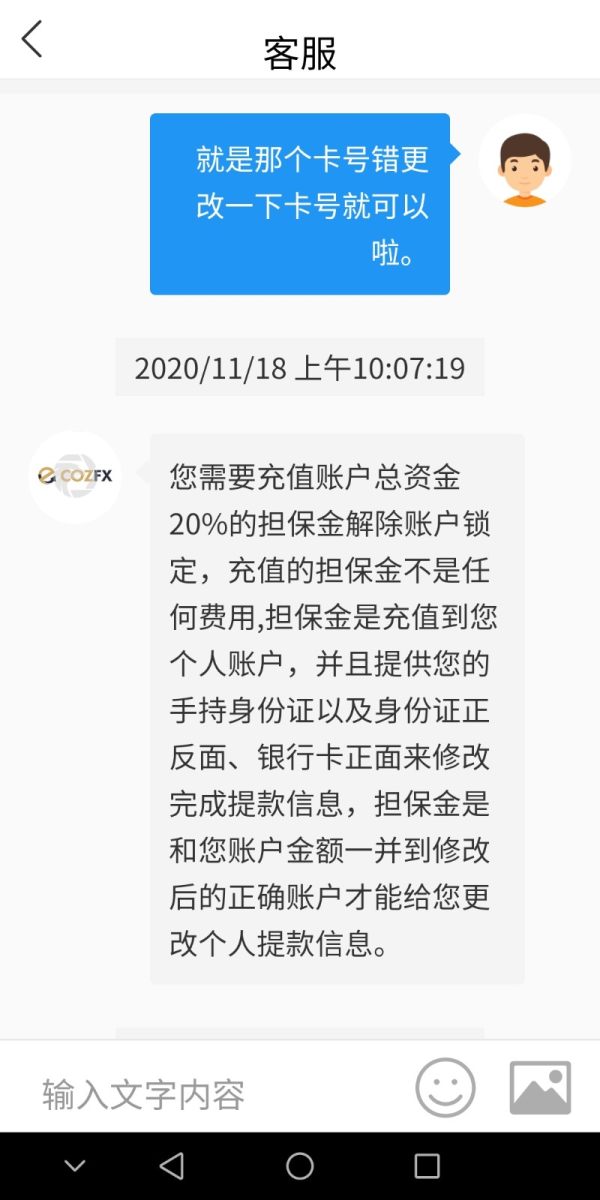 投资黑平台COZFX.无法出金.