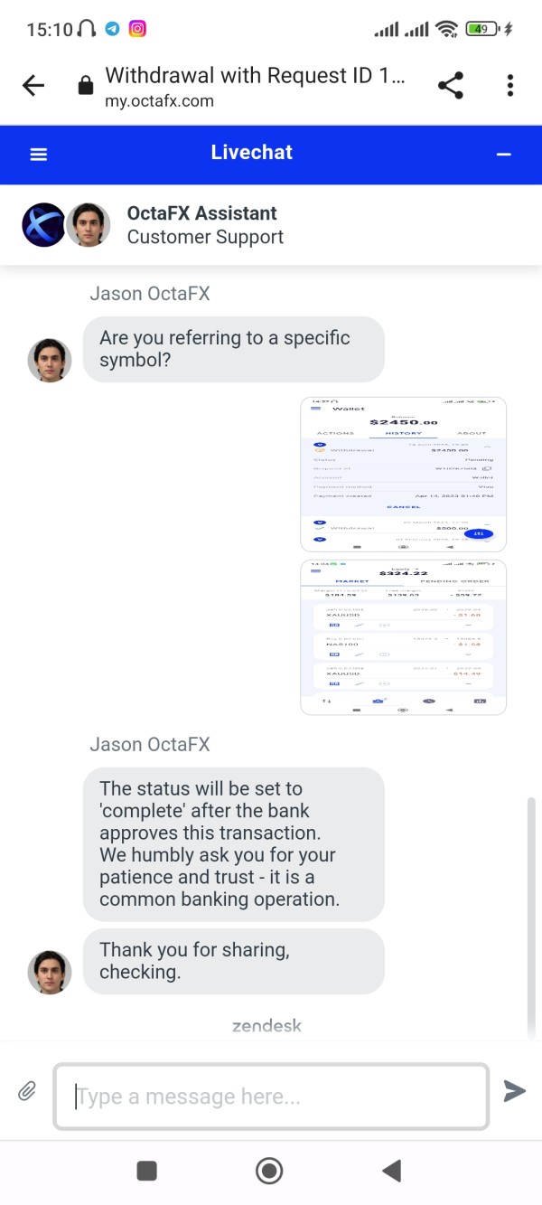 I tried to withdraw amount but Its not done by octa team. Withdrawal request no is W10267504. Same time I rested to transfer in territory account. I was done. But after some time I was not able to open my account . It was blocked by octafx team.