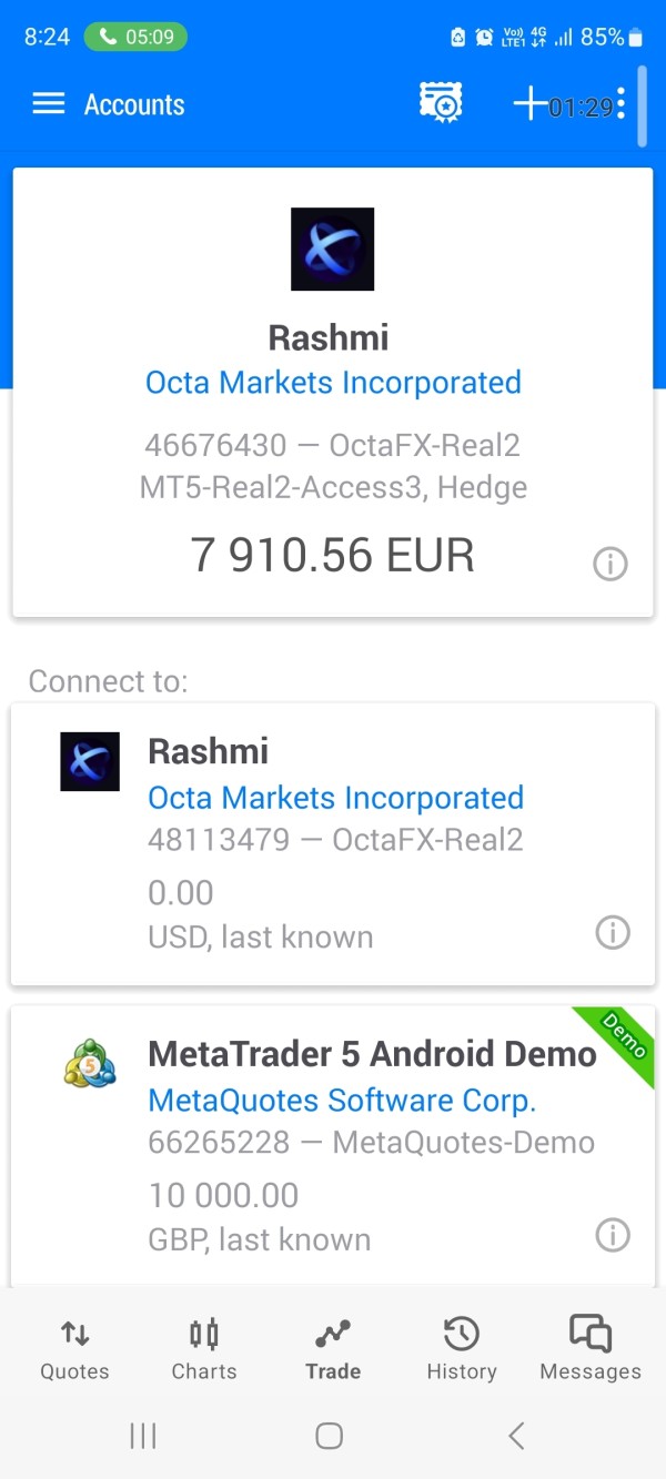 octafx ne mere saare trade apne aap close kar diye or mere user profile bhi block kar diya. ab mera balance bhi mujhe vapas nahi kar rahe hai,sirf reply karte hai ki payment ho jayega lekin nahi kiya.mere 7910 eur balance hai