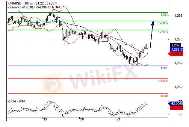 【Trading Central技术分析】6月22日黄金 当日内: 在1261之上,看涨