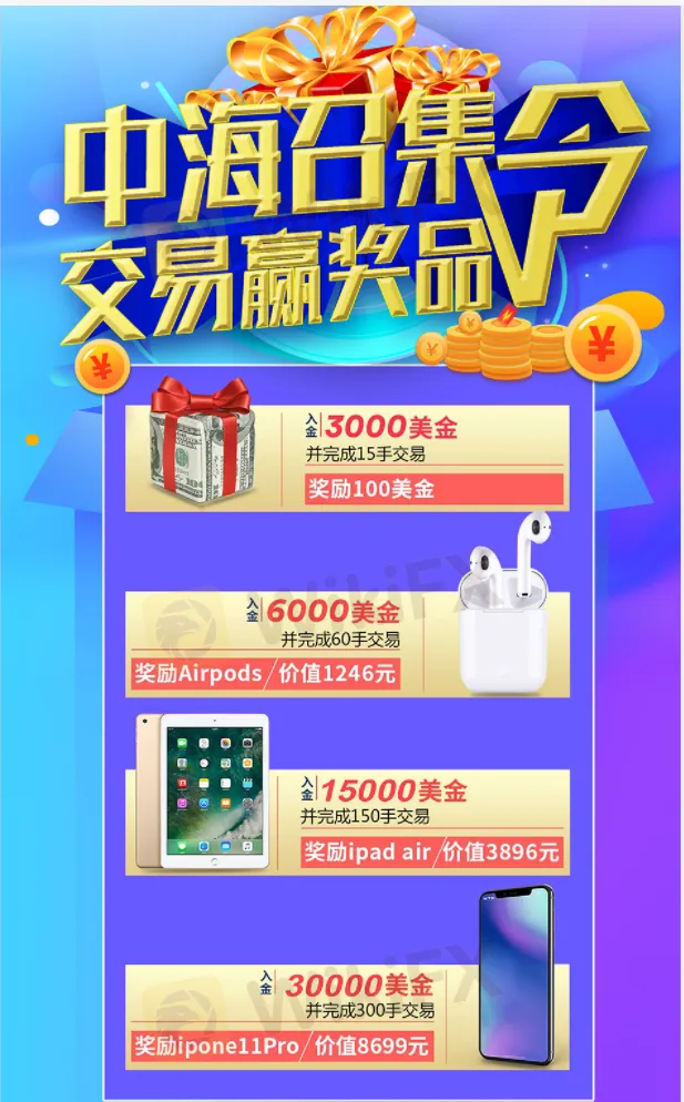 摘要:中海寰球交易有赠金,达到标准并有奖品活动,正式开启