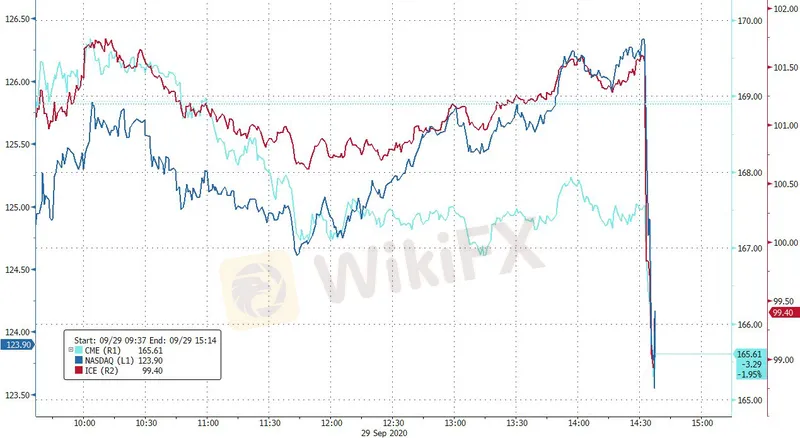 受此调查消息影响,主营原油及衍生品期货交易的洲际交易所、芝加哥商品交易所和纳斯达克的股价周二均大幅下跌。