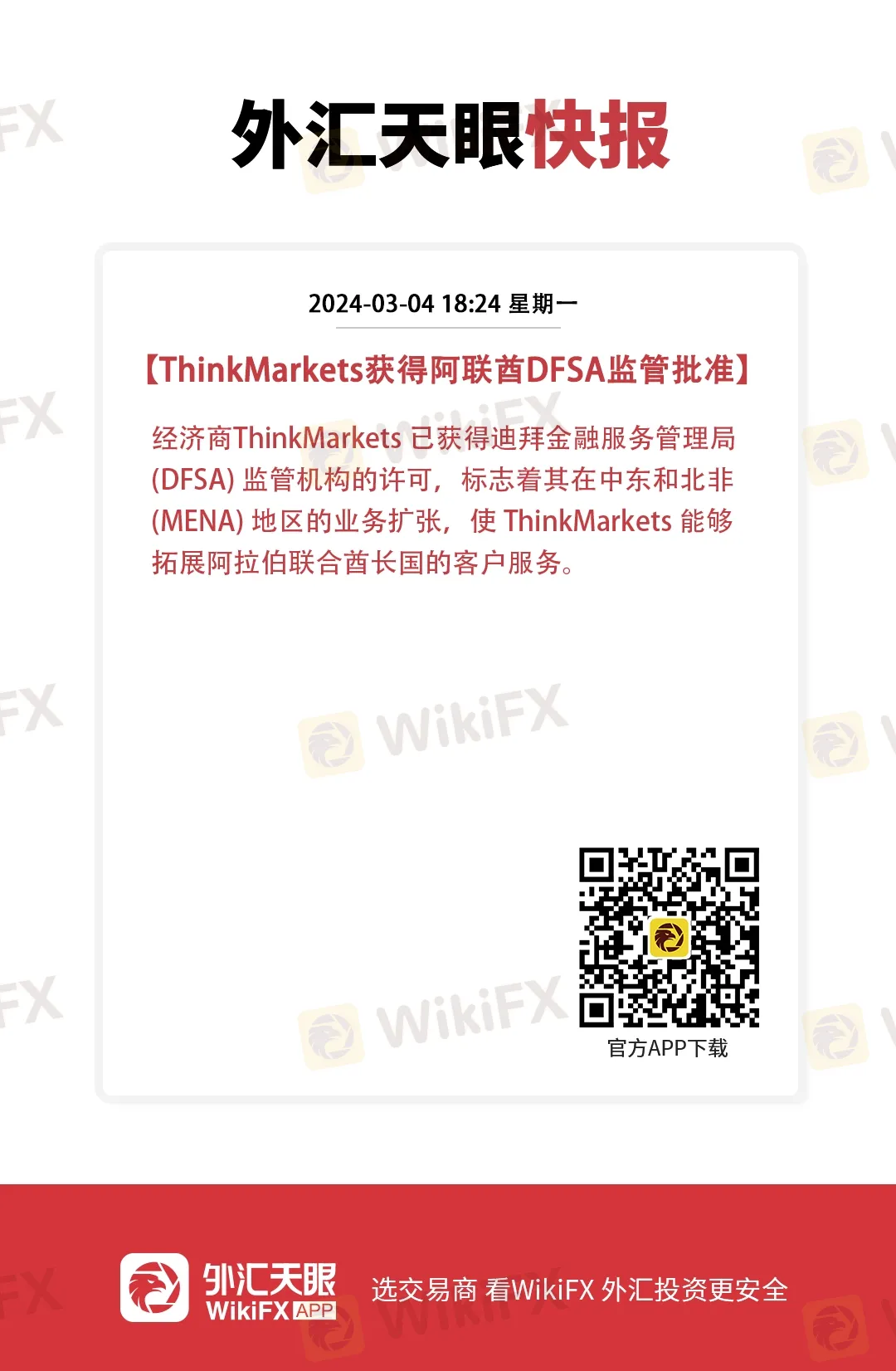 ThinkMarkets获得 阿联酋DFSA 监管批准
