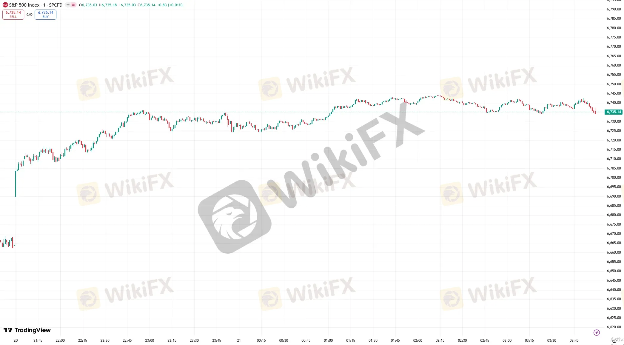 标普 500 指数涨 71.12 点,涨幅为 1.07%,报 6735.13 点