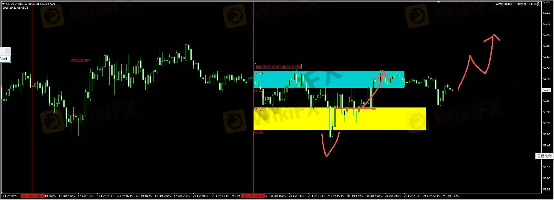 原油:昨天我们插件给出的黄色策略(跌破黄色下沿,挂上沿buy stop)完美完成1倍以上的盈亏比。日内继续保持昨天蓝色区域的操作即可。详细位置请咨询插件。