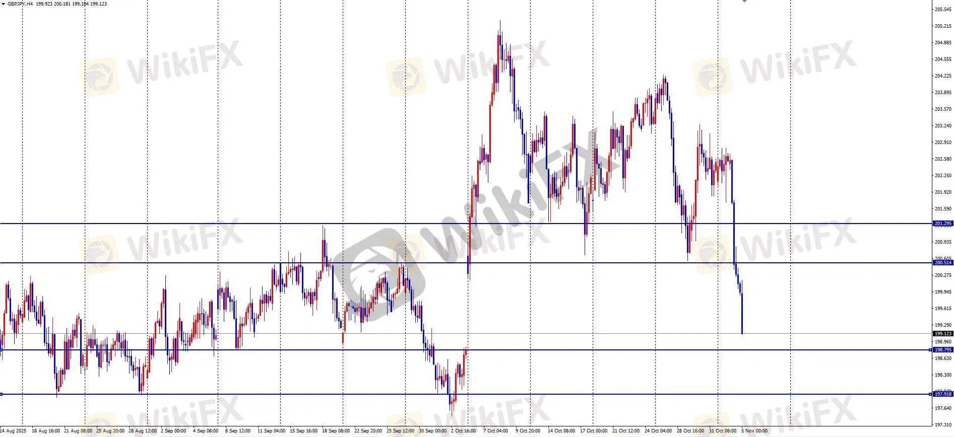 昨日回顾与ETO Markets观点:亚盘震荡后受美日下跌带动,欧盘加速下跌至199.87,全天波幅280点,日线收大阴。早盘续跌至199附近,黄金分割78.6%支撑,短线空头占优。