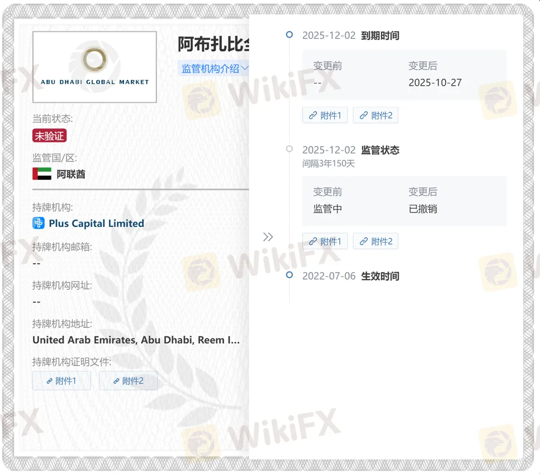 本次监管变动因plus365对应的公司实体PLUS CAPITAL LIMITED被撤销授权,PLUS CAPITAL LIMITED曾持有阿布扎比全球市场(ADGM)金融服务监管局(FSRA)的机构外汇牌照。
