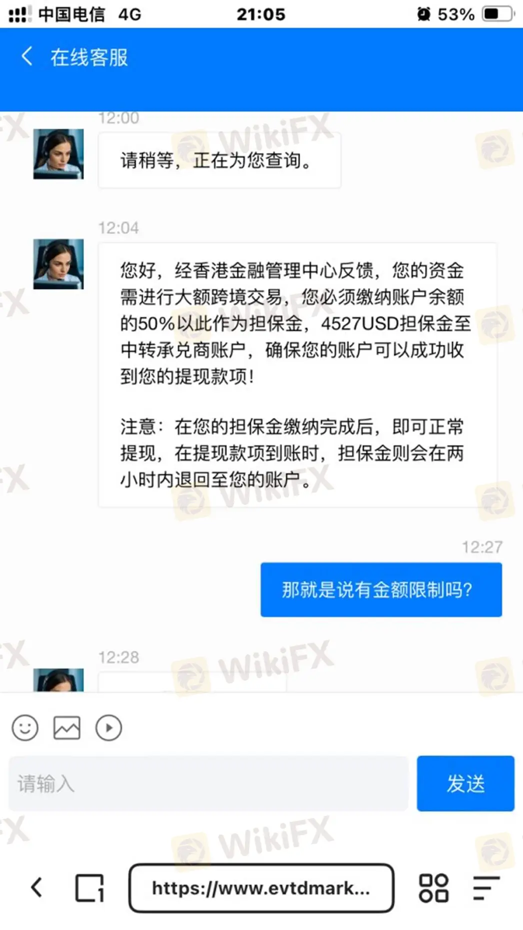 Reverie Markets界面看起来已经是一个问题重重的平台了,新的Evtd更进一步。Evtd是evtdmarket01网站的品牌名称,客服称“evtdmarket01网站就是Reverie Markets链接”,这与两位客户截图对应。