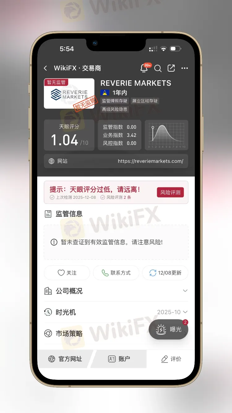 Reverie Markets Ltd 宣称是一家注册在圣卢西亚的在线交易平台,持有圣卢西亚 IFC 的牌照。提供外汇、贵金属、能源、指数和加密货币等产品。