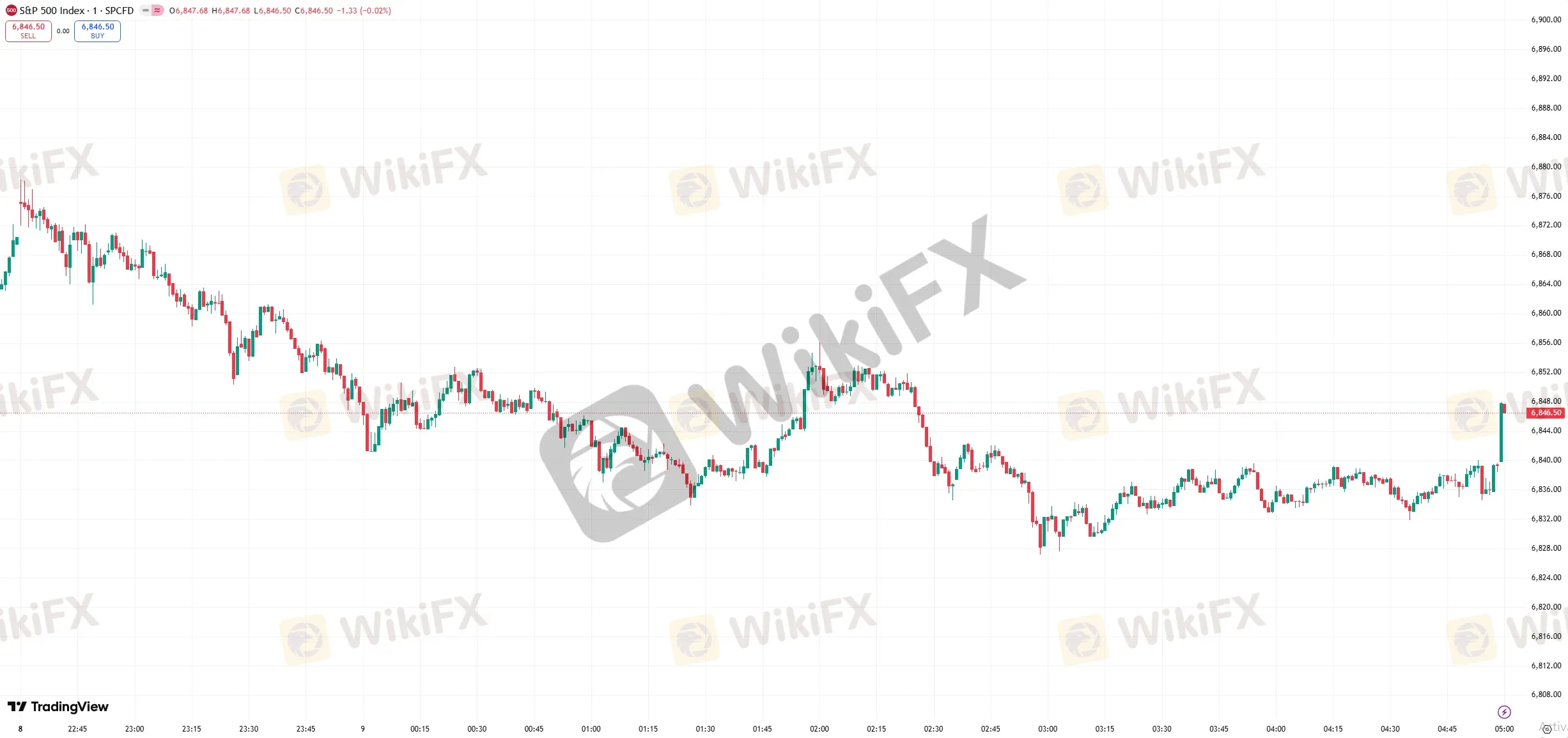 标普 500 指数跌 23.89 点,跌幅为 0.35%,报 6846.51 点
