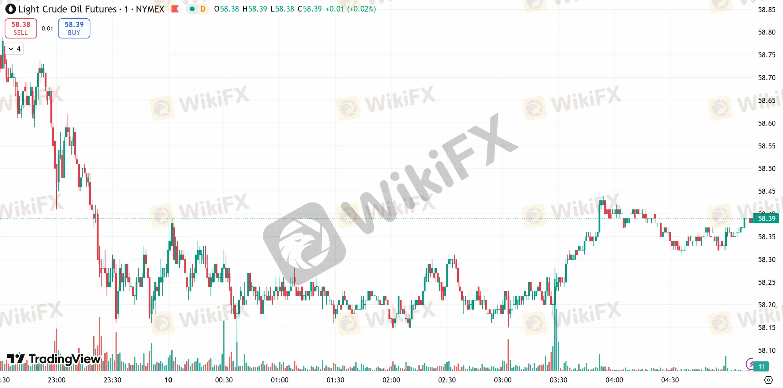 技术面上,原油从日线图级别看,从局部级别看,当下震荡节奏呈次要震荡,K线阴阳反复交替,向前期低点 56 附近进行测试。MACD指标在零轴下方附近交织,空头表现无力度,56 强支撑位被跌破,则原油走势中期将进入下行节奏。原油短线 (1H) 走势止步上行,掉头向下跌穿 60 重要心理关口。均线系统空头排列,短线客观趋势方向向下。早盘油价在低位弱势震荡,空头表现无力度。预计日内原油走势继续向下创新低。