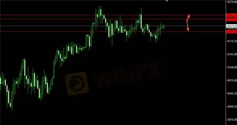 美元指数受支撑,黄金上涨。关注支撑位4199.60,4小时看多至4241.70,关注压力位4230.70,4小时看空至4187.50。