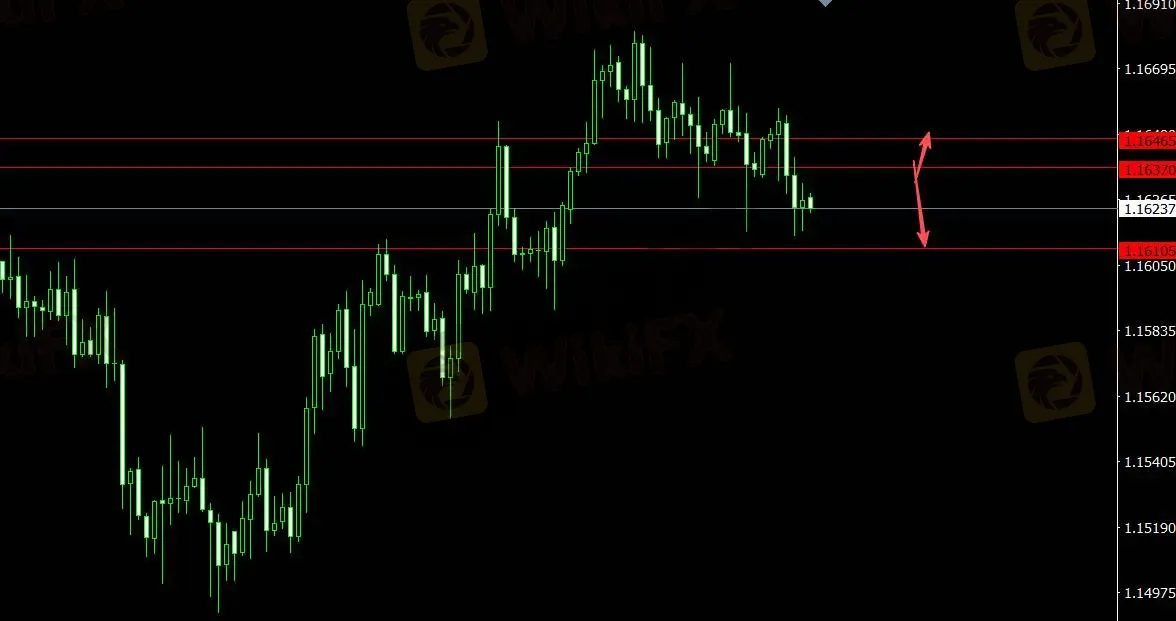 美元指数受支撑,欧元承压。关注支撑位1.16110,4小时看多至1.16470;关注压力位1.16370,4小时看空至1.16030。