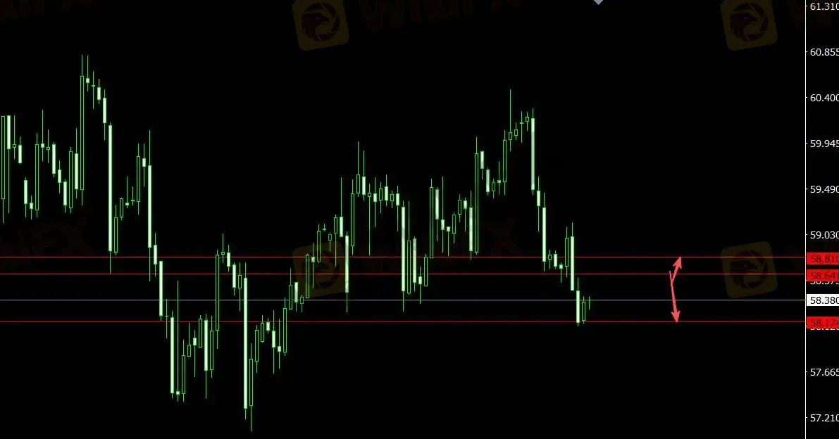美元指数受支撑,原油反弹,关注支撑位58.170,4小时看多至58.810;关注压力位58.640,4小时看空至57.990。