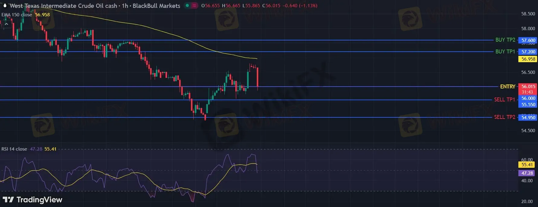 在 56.00 下,看空,目标价位定在 55.55 ,然后为 54.95。