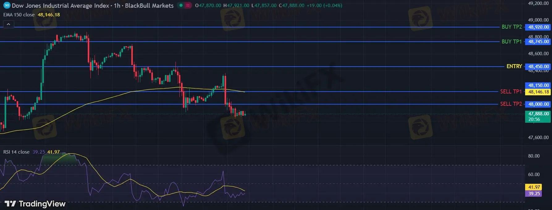 在 48450 之下,看跌,目标价位为 48150 ,然后为 48000 。