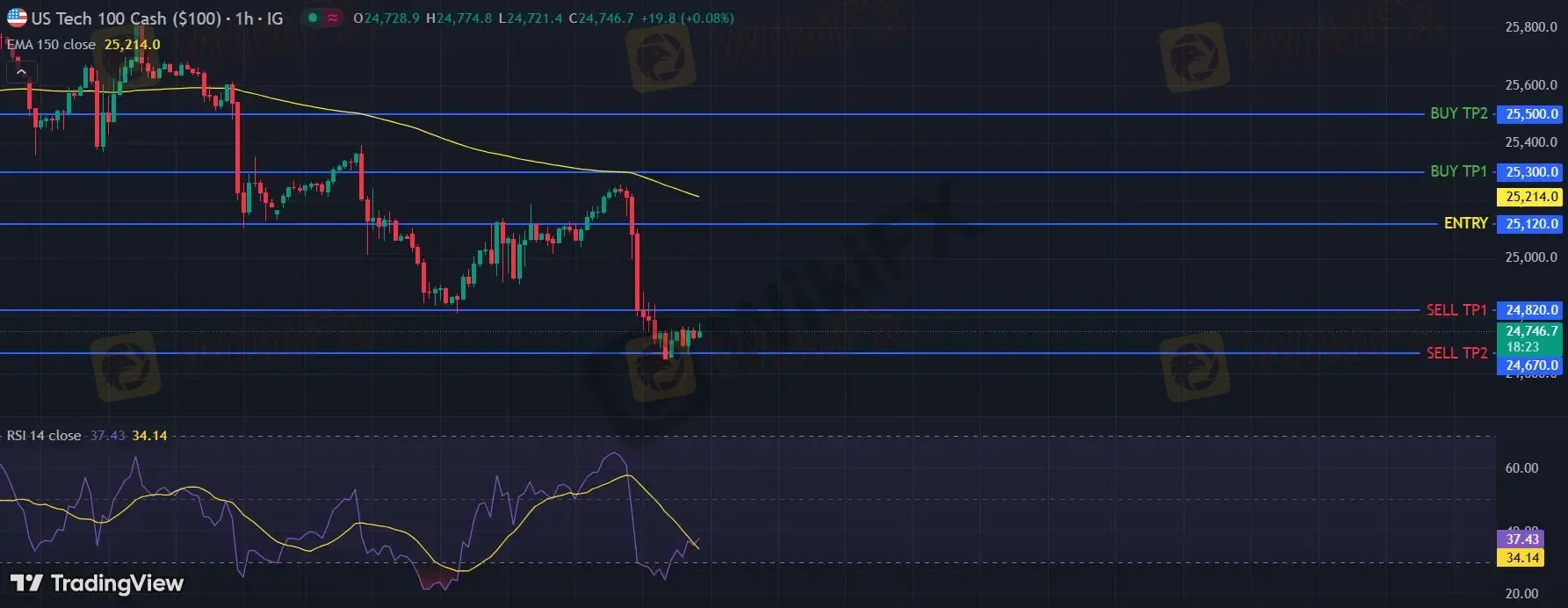 在 25120 之下,看跌,目标价位为 24820 ,然后为 24670 。