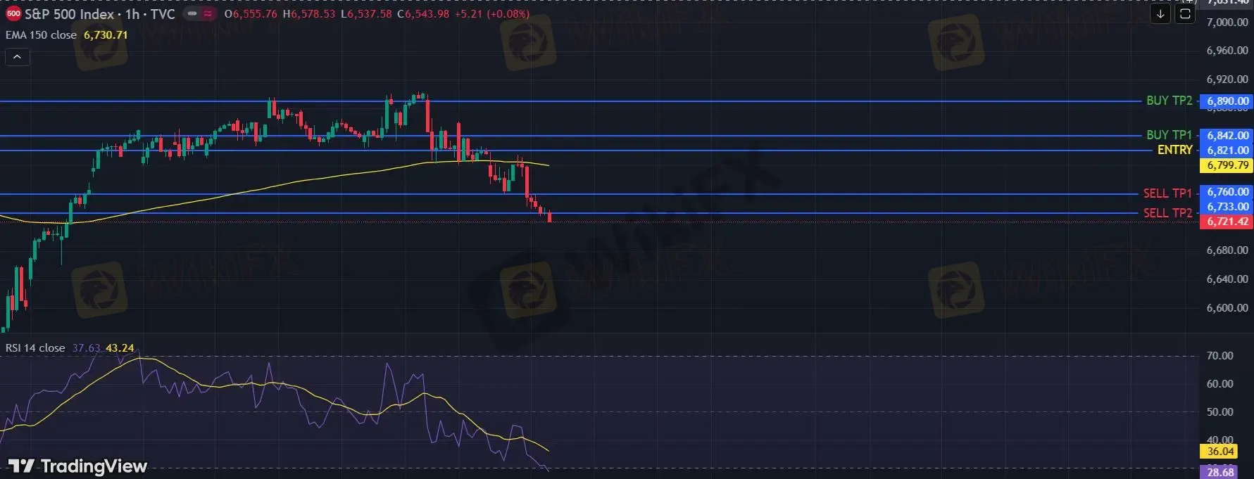 在 6821 之下,看跌,目标价位为 6760 ,然后为 6733 。