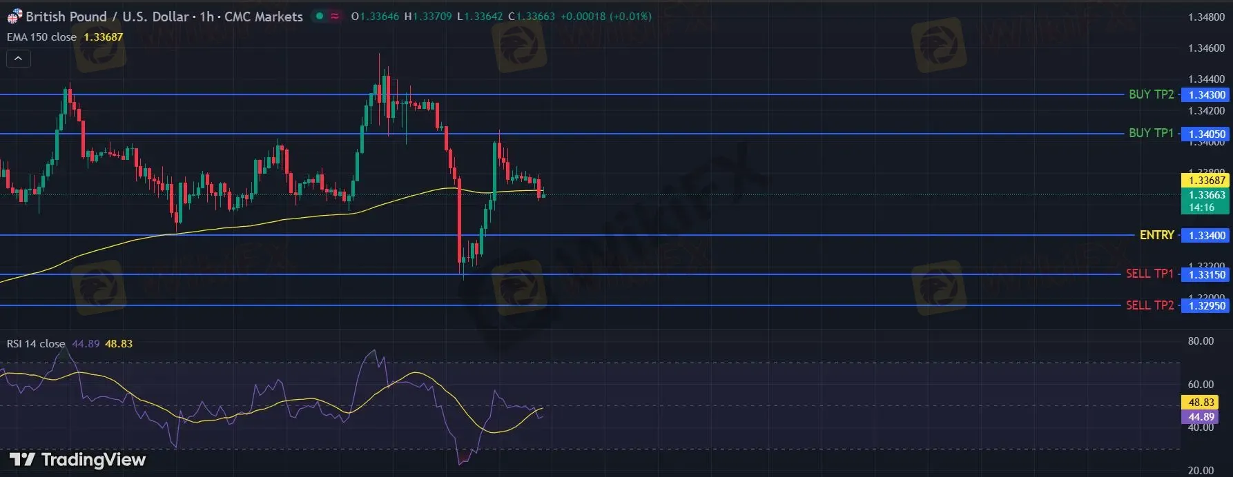 在 1.3340 下,看空,目标价位定在 1.3315 ,然后为 1.3295。
