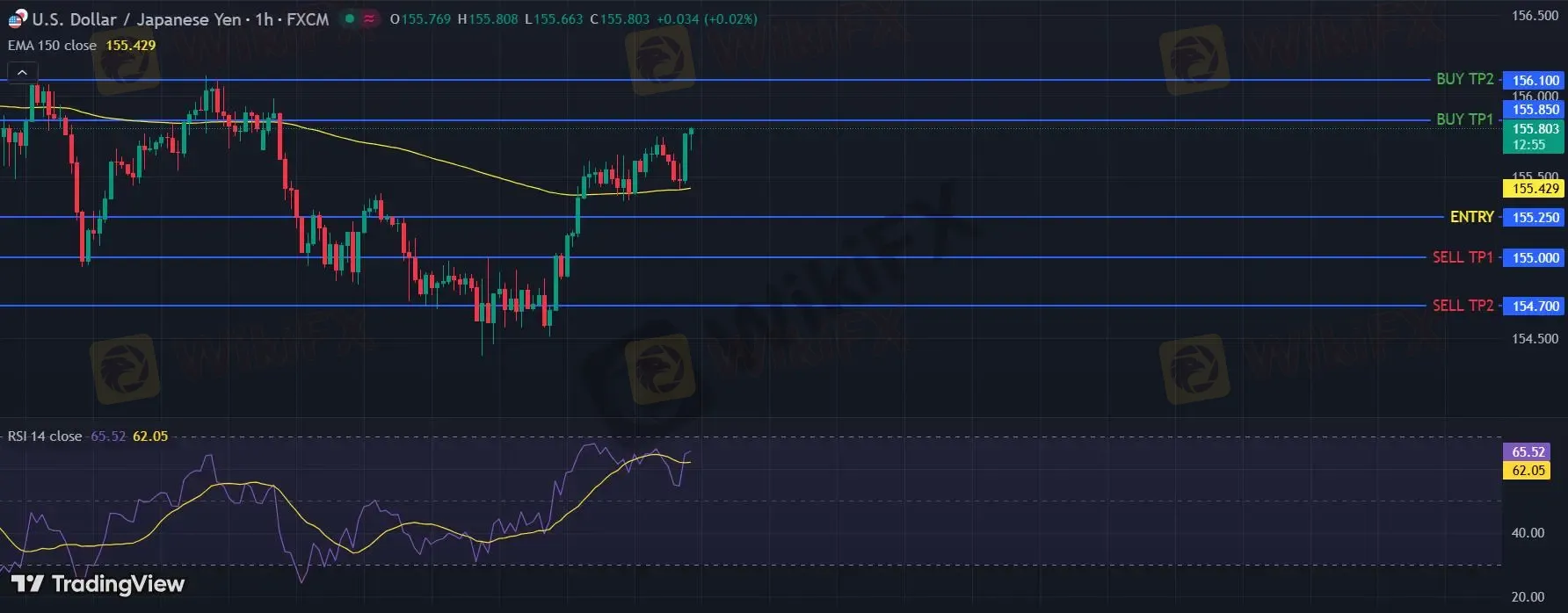 在 155.25 之上,看涨,目标价位为 155.85 ,然后为 156.10 。