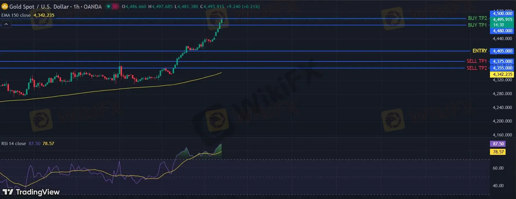 在 4405 之上,看涨,目标价位为 4480 ,然后为 4500 。