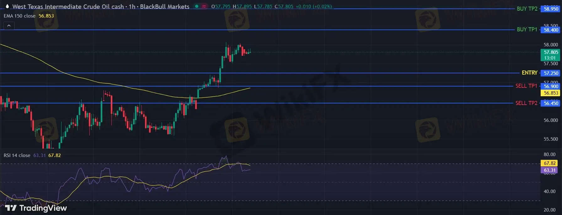 美国原油 (WTI) 期货 (G6) 当日内: 期待58.95。