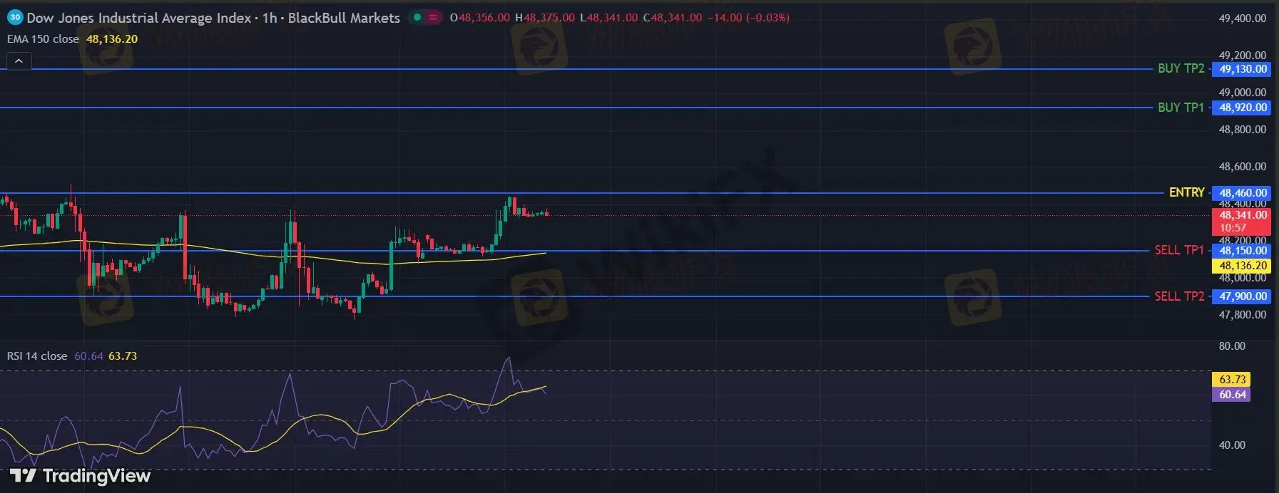 在 48460 下,看空,目标价位定在 48150 ,然后为 47900。