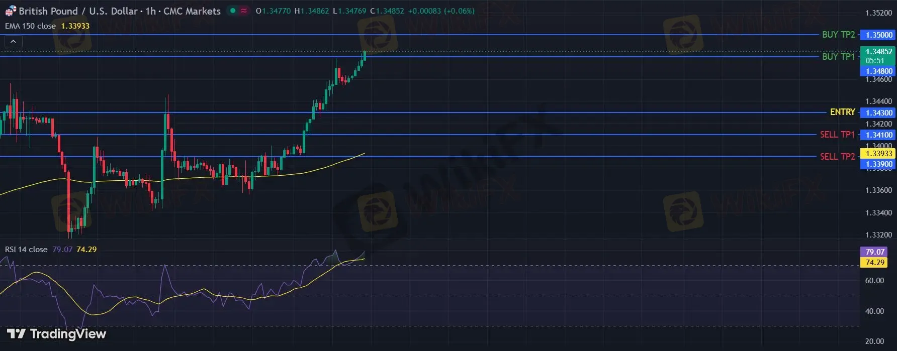 在 1.3430 下,看空,目标价位定在 1.3410 ,然后为 1.3390。