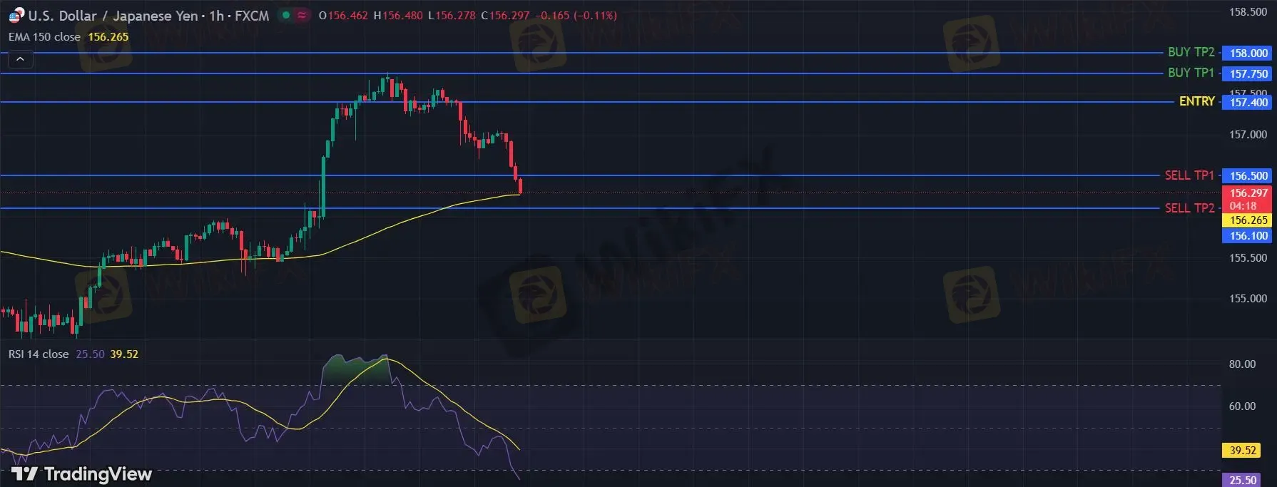 在 157.40 之下,看跌,目标价位为 156.50 ,然后为 156.10 。