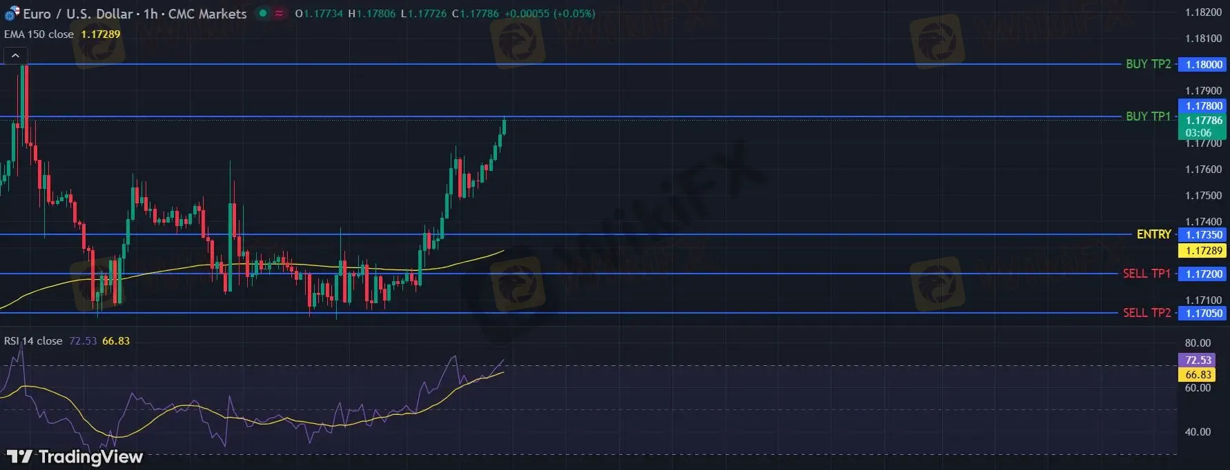 在 1.1735 下,看空,目标价位定在 1.1720 ,然后为 1.1705。