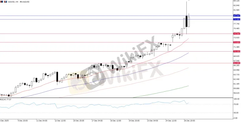 超买警示:白银今年迄今已累计上涨约170%,短期已进入深度超买区间。周一价格在峰值附近快速下跌约5%,触发了获利回吐。