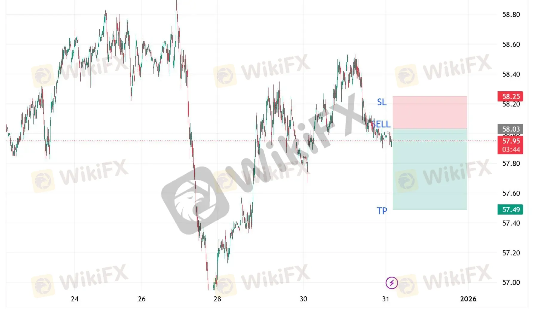 当日目标区间:58以上附近做空,带好止损。