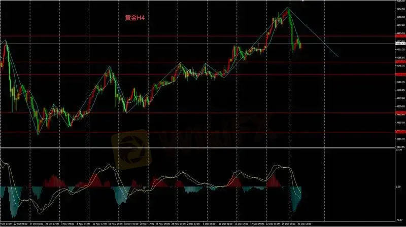 H4图表金价多头暂时回避,持续跟踪金价在4300支撑的变动。