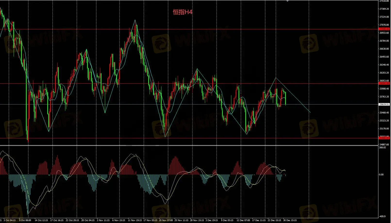 恒指H4多头需等待价格上破26000,可考虑,否则不考虑多头。
