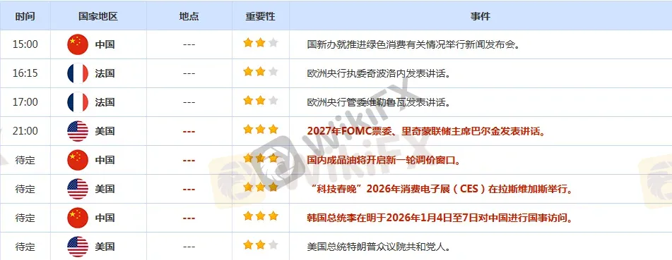 市场目前正等待周五公布的美国12月非农就业数据,以寻找更多关于经济和政策路径的线索。目前市场普遍预期美联储在2026年将至少降息两次。