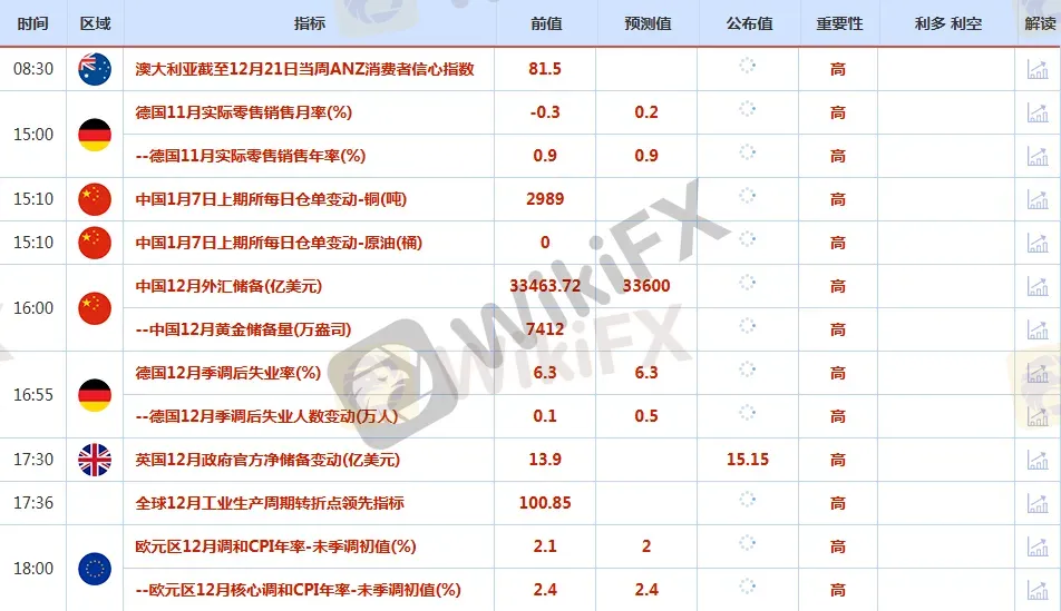 前日公布数据与消息: