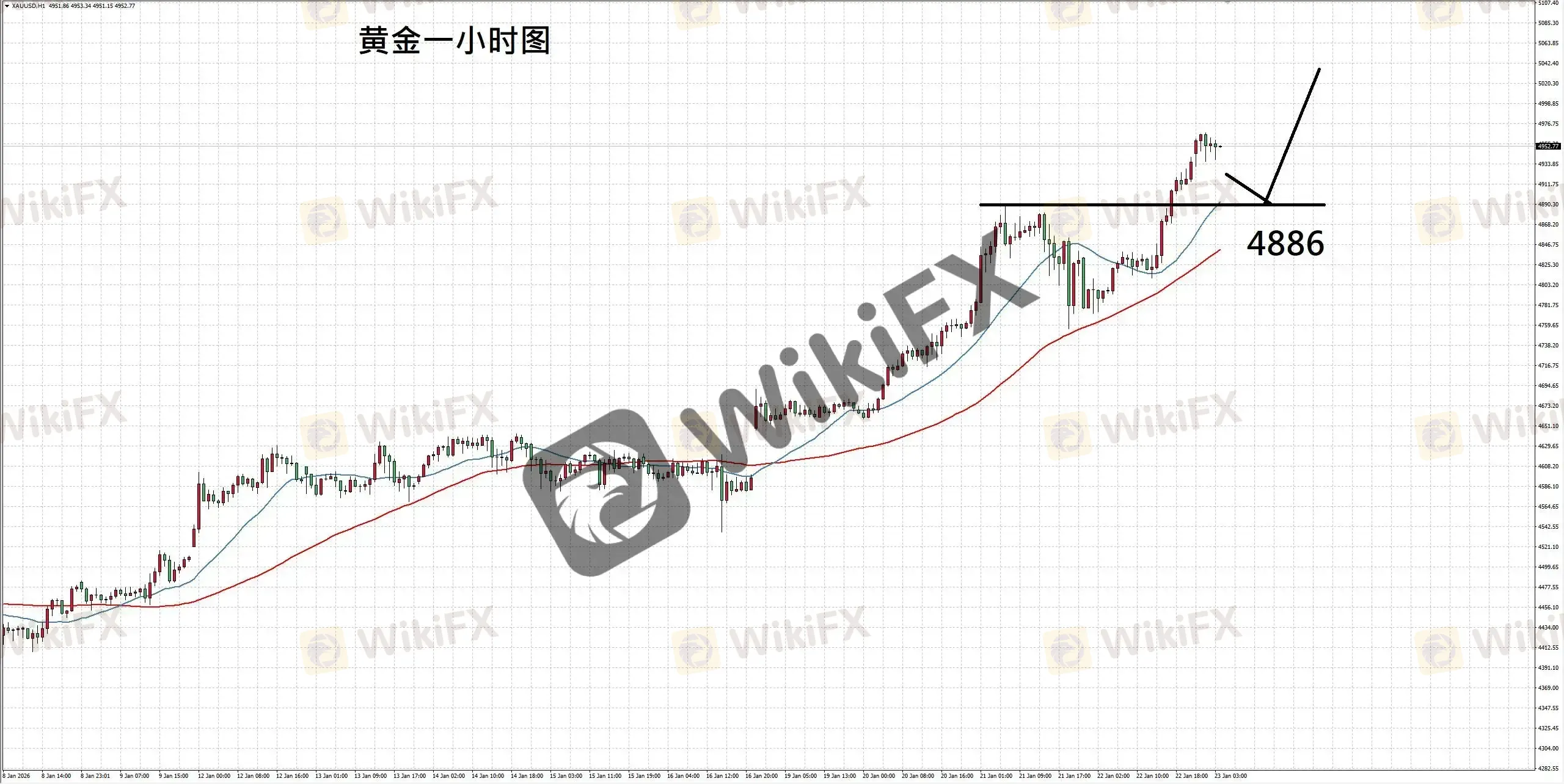 摘要:【基本面分析】尽管美国总统特朗普表示,与北约达成的协议框架中以确保美国可以进入格陵兰岛,令近期局势有所降温,经济数据也凸显美国经济仍具韧性,不过由于经济数据较为滞后,并未对黄金带来利空。而近期地缘局势变化冲击市场对美元信心,央行持续购入黄金储备也意味着去美元话行动持续,在避险工具选择受限之下,为黄金带来充沛上涨条件。【技术分析】黄金一小时图,走势虽一度回落但未击破前期支撑,配合走势仍位于均线之上,