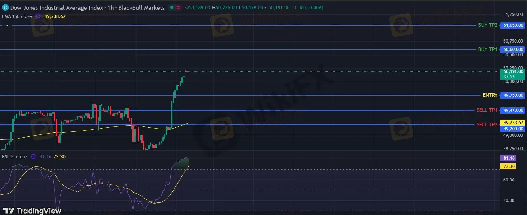 在 49750 下,看空,目标价位定在 49470 ,然后为 49200。