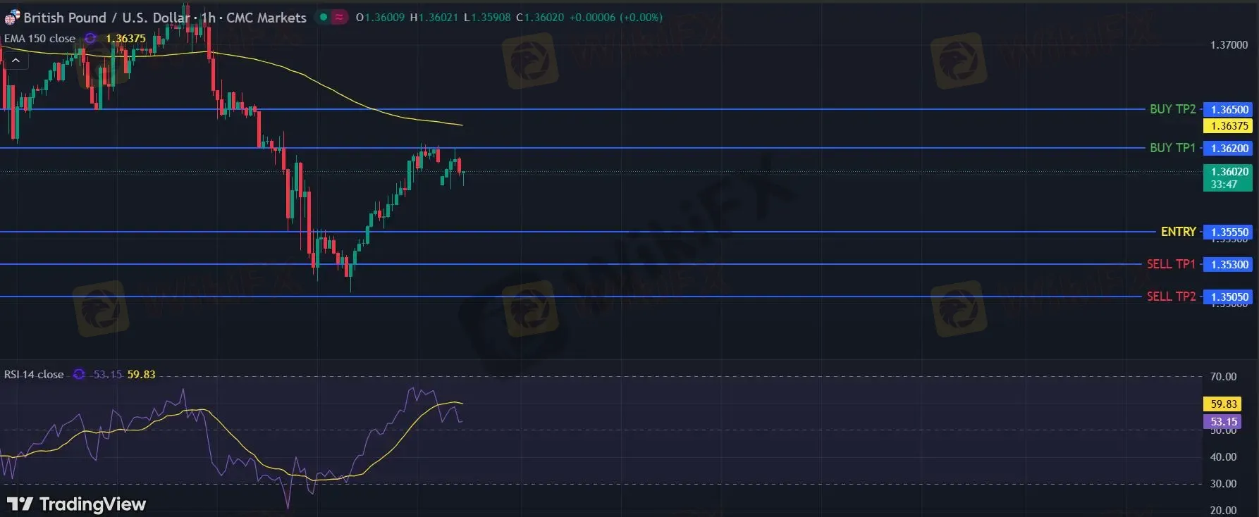 在 1.3555 下,看空,目标价位定在 1.3530 ,然后为 1.3505。