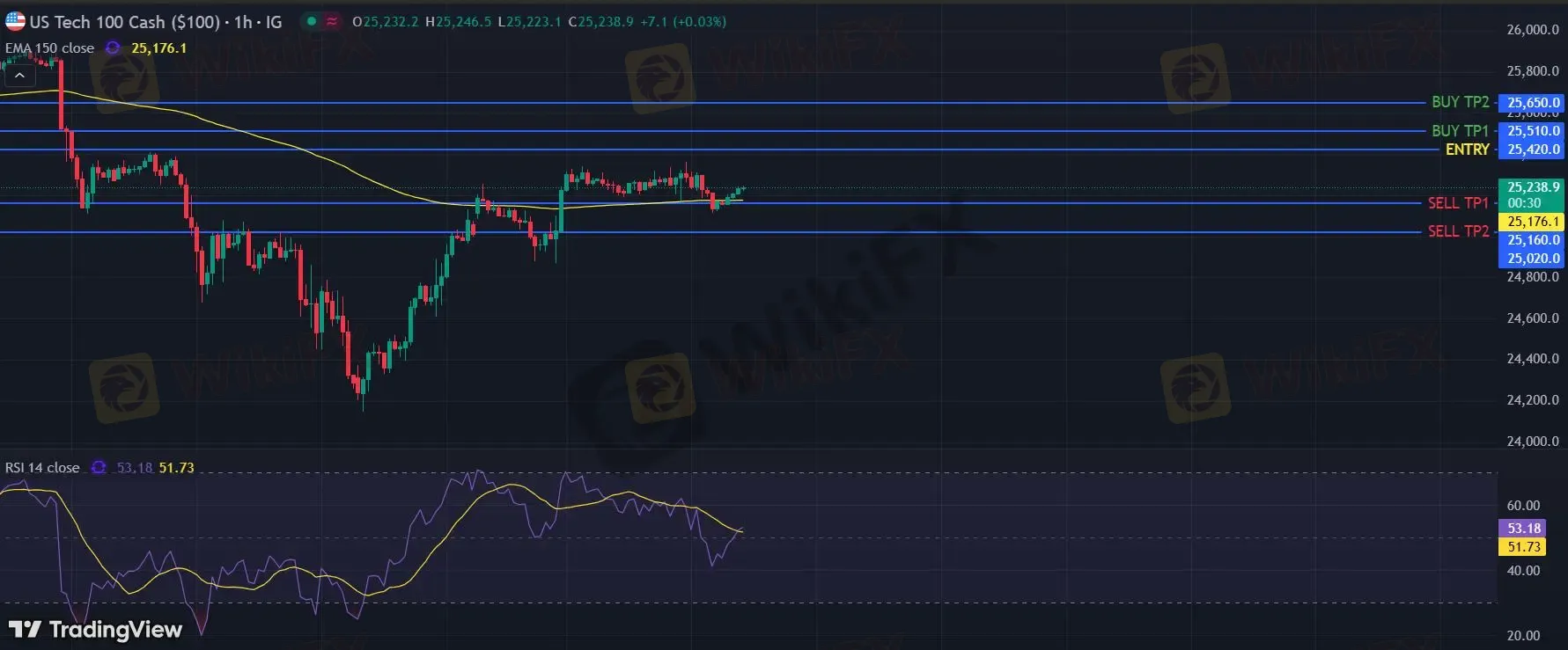 在 25420 之下,看跌,目标价位为 25160 ,然后为 25020 。
