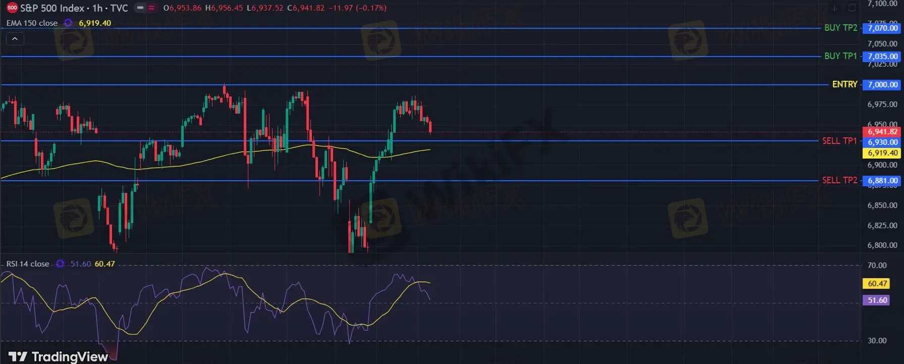 在 7000 之下,看跌,目标价位为 6930 ,然后为 6881 。