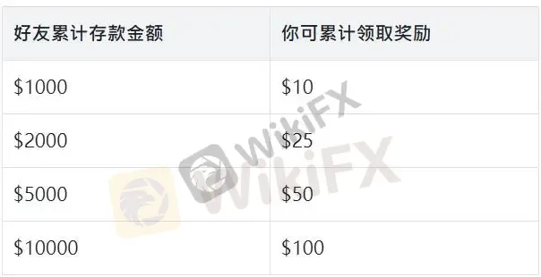 直接邀请的好友,激活后首30天累计存款达到对应层级,你就能累计领取对应奖励,最高可领$100/人!