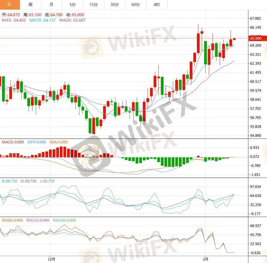 从技术面看,WTI原油日线级别维持于上升通道内运行。近期价格自 60 美元整数关口反弹后连续收阳,重新站上 50 日与 100 日均线,均线系统呈多头排列格局,中期趋势依然偏强。