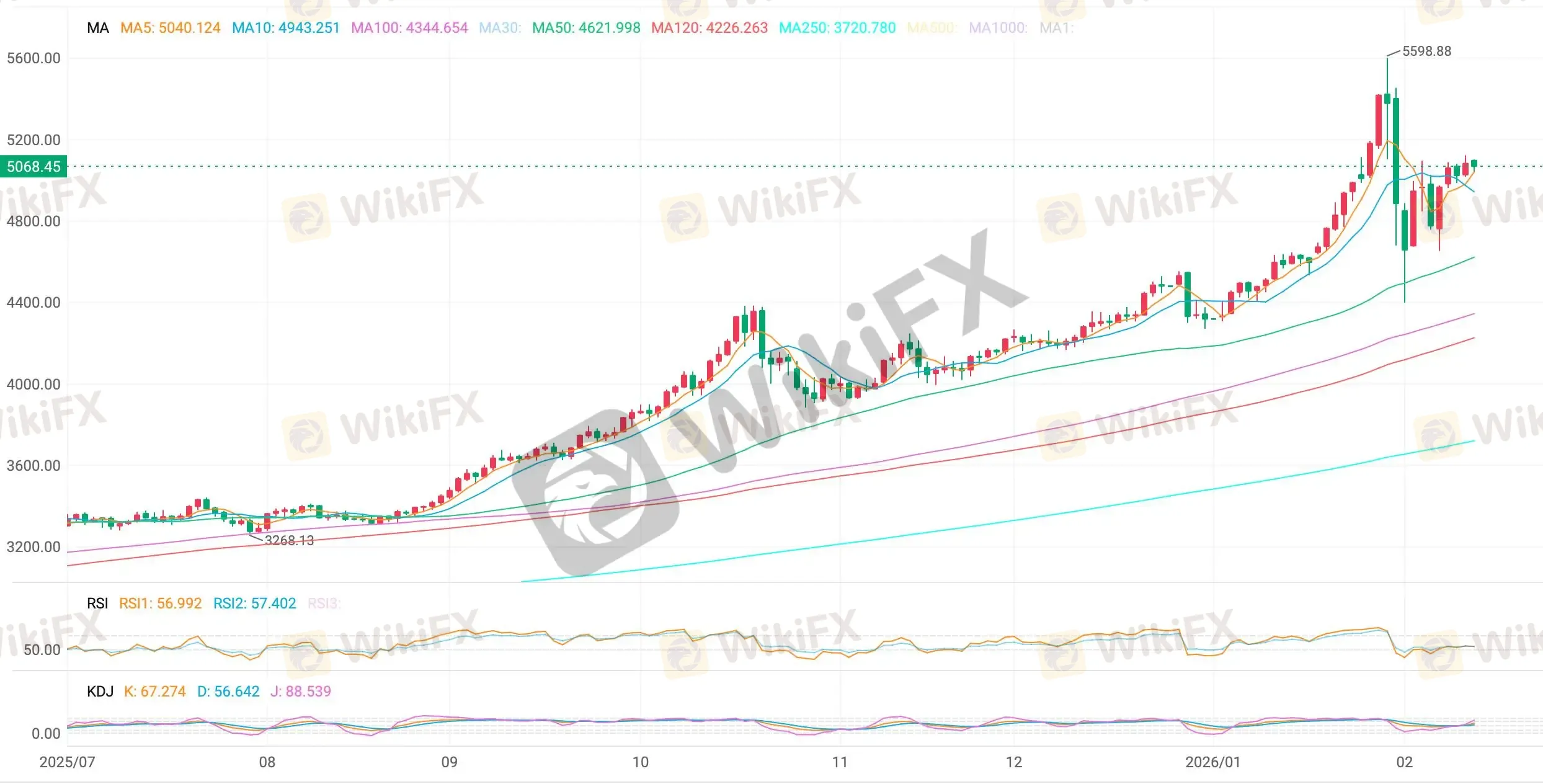 从技术结构观察,5040 一线构成短线关键分水岭。价格若稳守 5040 之上,整体仍维持偏强运行节奏,上方关注 5110 与 5140 区域表现;若有效跌破 5040,则需警惕回调延伸风险,下方关注 5005 及 4980 一带的承接力度。RSI 指标显示,当前动能运行趋势较为复杂,短线多空博弈加剧,波动节奏或反复。