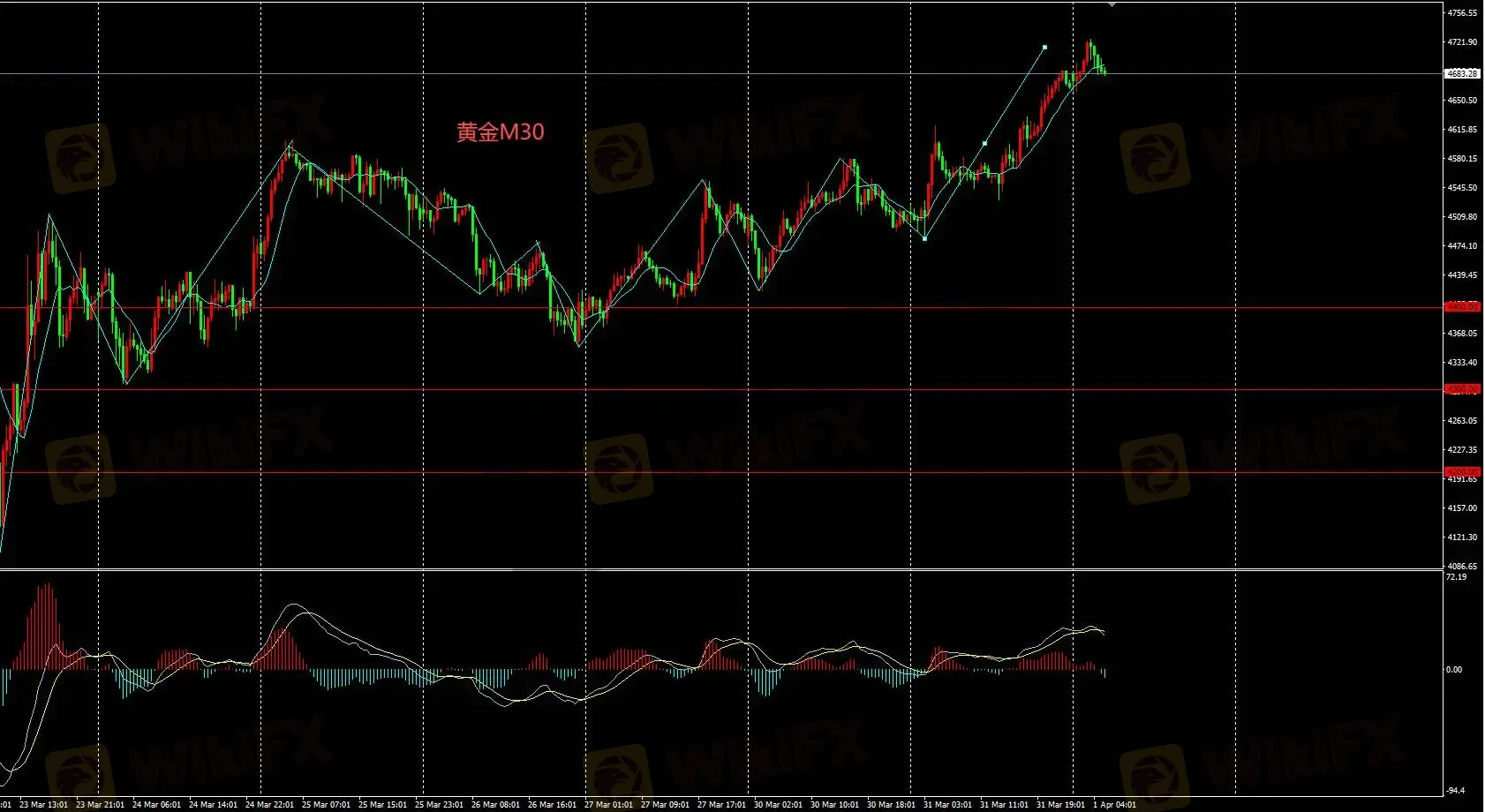 M30图表金价日内逢低买入操作,重点关注金价在4700变动,目标4800。