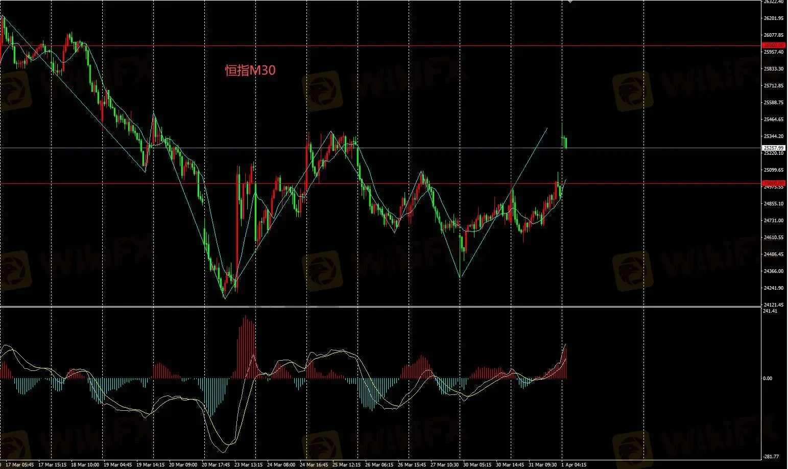 恒指M30日内看多,日内逢低买入操作,下方重要关口25000,目标25500。
