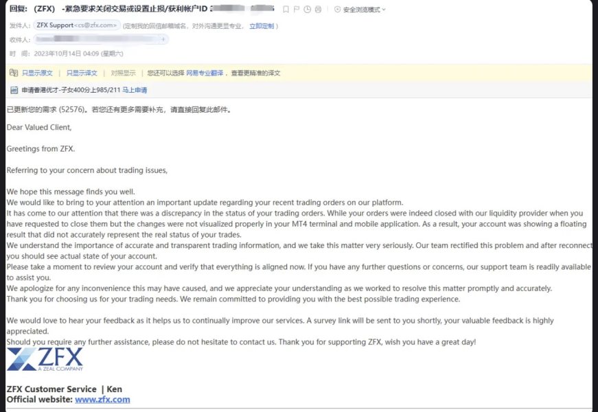 As an ordinary investor, I put a lot of money into forex trading, believing in the supposed “regulated overseas platform.” But up to this day, over three hundred thousand US dollars of mine is still stuck in my ZFX account, entirely unable to be withdrawn. When I tried contacting customer service or lodging complaints with the platform, I received nothing but silence; they even froze my account at will, turning all their previous promises into empty words In the end, over $300,000 of my money was frozen outright, with absolutely no hope of withdrawal. Afterward, I turned to authorities and regulatory bodies, yet the company responded with the attitude of “we’re an offshore company, not subject to domestic oversight—feel free to complain.” There are many other investors like me, whose funds have been trapped inexplicably or who have lost everything to margin calls. I sincerely hope more investors heed this warning